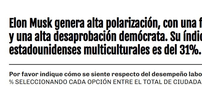 Hablando solo sobre el desempeño de Musk, el 50% de la población multicultural lo desaprueba, mientras que el 37% apoya su labor.