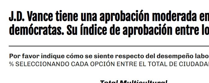 En total, solo el 31% de los votantes multiculturales aprueba la gestión de Vance, mientras que el 44% la desaprueba; el 41% de la población no multicultural aprueba su labor, y el 35% la desaprueba.