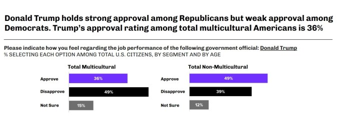 Just 36% of the multicultural population, including AAHPI, Black, and Hispanic approves Trump’s performance.
