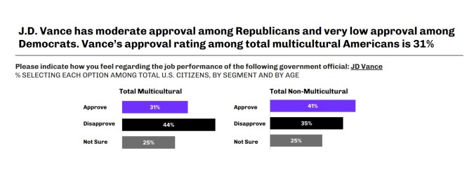 Among multicultural Republicans, 65% approve of Vance’s, which rises to 73% among non-multicultural Republicans.