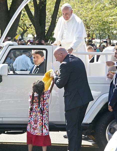 Cuando tenía cinco años, Sophie Cruz viajó a Washington, D.C en septiembre de 2015, para entregarle al papa Francisco una carta y una camiseta, en la que le expresaba su preocupación por sus padres indocumentados y sus temores porque fueran deportados.