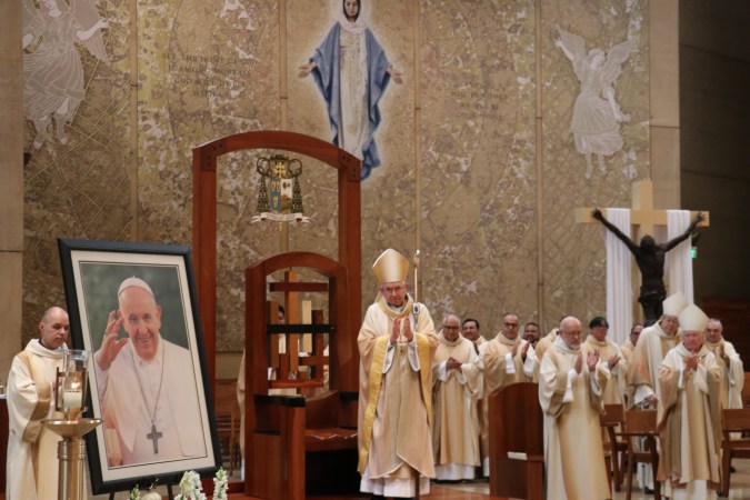 Durante la homilía en la Catedral Nuestra Señora de Los Ángeles, el arzobispo Gómez recordó las enseñanzas del papa Francisco y su énfasis en la compasión, en particular hacia los refugiados y migrantes.