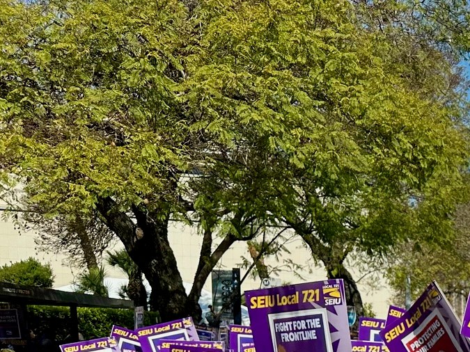 Aunque se implementaron planes para garantizar que los servicios de salud de emergencia continuaran sin obstáculos, la mayor parte de fuerza laboral del Condado de Los Ángeles de SEIU 721 participa en la huelga.