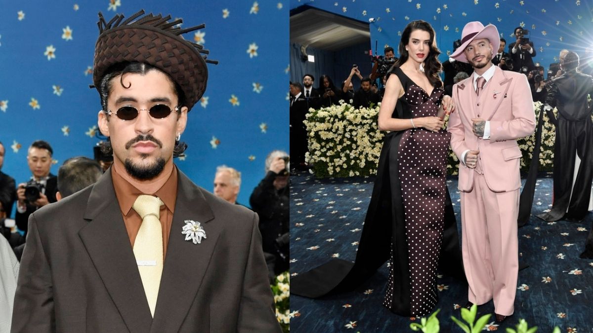 Bad Bunny no pasó desapercibido. El puertorriqueño apostó por un traje marrón de Prada y coronó su look con una pava, sombrero típico de Puerto Rico, como “un tributo especial a Puerto Rico”, explicó su equipo de estilismo.