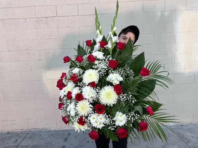 Gabriel Vásquez condujo alrededor de 26 millas entre el barrio de Woodland Hills en el Valle de San Fernando hasta el Mercado de las Flores en el centro de Los Ángeles para comprarle flores a la autora de sus días.