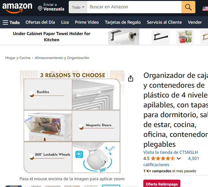 En ese sentido, Amazon tiene disponible en oferta para esta ocasión un armario de cajas y contenedores de plástico de 4 niveles, apilables, con un precio de descuento de $24.40, cuando su costo original es de $51.84.
