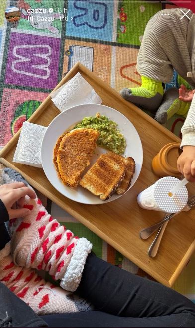 Entre las fotos destaca una en la que ambas están sentadas en el piso mientras comparte un rico desayuno de un omelette, pan tostado y aguacate.