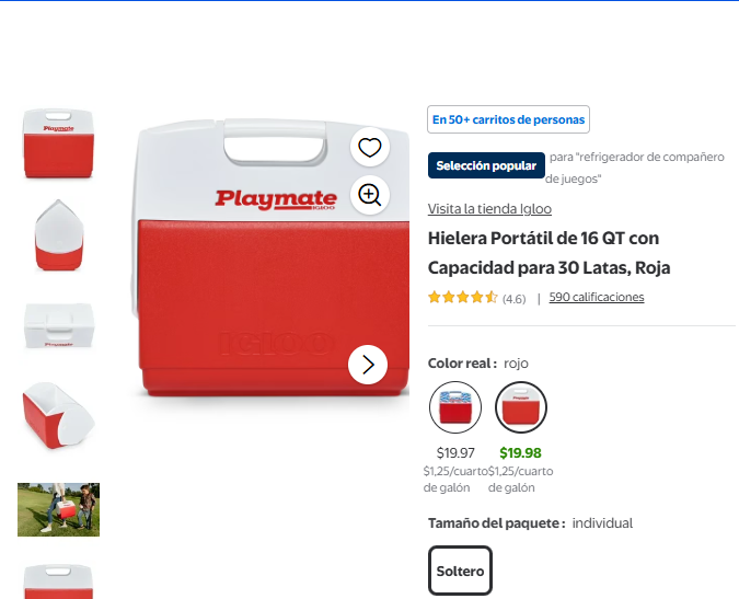 Hielera portátil: En esta época del año, al salir a cualquier parte al aire libre para compartir, siempre es necesario contar con una hielera portátil para mantener bebidas y refrigerios con la temperatura adecuada. Walmart la tiene disponible en $19.98, para aprovechar antes que vuelva a su precio original de $39.99.