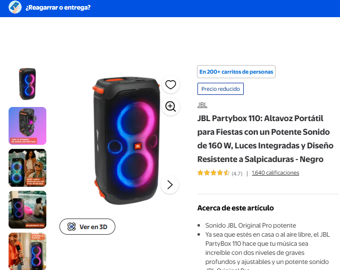 Corneta JBL: La música también es parte de la celebración en muchos hogares de EEUU que honran a sus difuntos. Esta corneta está disponible en Walmart tiene un valor actualmente de $299.95, es decir que los compradores ahorrarán dinero si la llevan en este momento, porque su precio original es de $349.95.