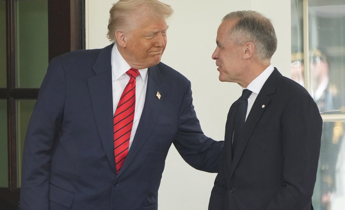 El presidente Donald Trump dialoga con Mark Carney, primer ministro canadiense, en busca de un acuerdo de colaboración para mejorar la seguridad en ambas naciones. Crédito: Mark Schiefelbein | AP