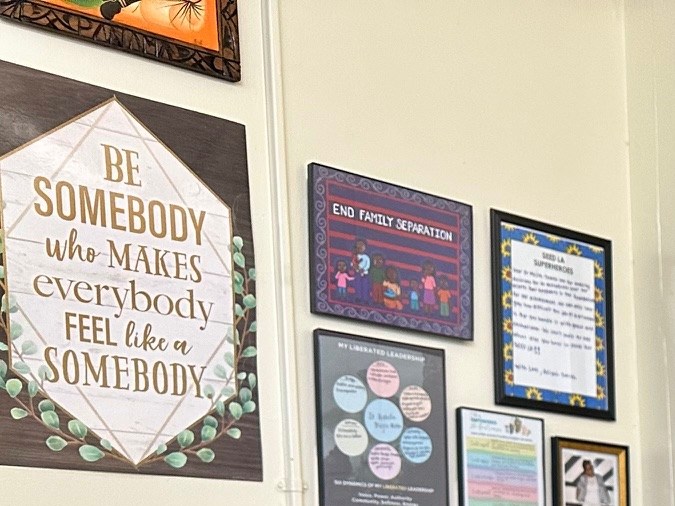 “Otros estudiantes pintaron un mural que colocamos aquí mismo, justo afuera de nuestra clase, y luego algunos aprendieron sobre, por ejemplo, cuáles son algunas de las luchas que han enfrentado los estudiantes latinos, no solo en este tiempo reciente, sino históricamente, y cuáles son algunos de los desafíos como las huelgas del Este de Los Ángeles no hace mucho tiempo, en la década de 1960. Así que aprendieron por qué su voz todavía importa”.