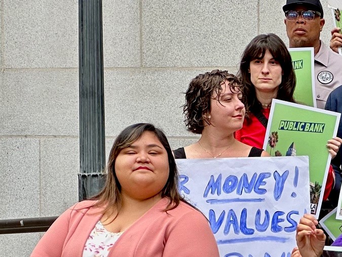 “Los Ángeles está perdiendo millones a manos de la banca privada mientras los barrios se preparan para sufrir recortes en sus servicios esenciales y una crisis cada vez más profunda”, declaró Trinity Tran, directora ejecutiva de Public Bank LA.