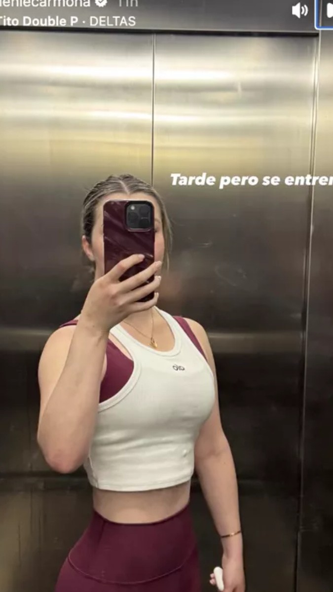 “Tarde, pero se entrenó”, escribió Melenie orgullosa de su disciplina en una fotografía que acompañó de la canción ‘DELTAS’ de Tito Double P.