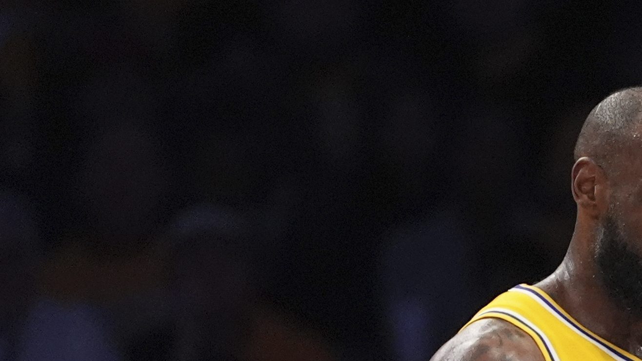 LeBron james, Luka Doncic y Rui Hachimura de Lakers. Crédito: Mark J. Terrill | AP