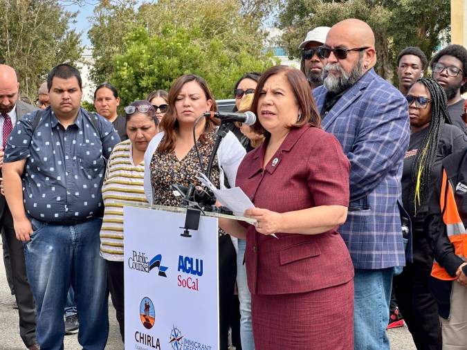 “Hemos escuchado testimonios de más de 100 familias de personas llevadas al B-18 y otros centros de detención que dan fe de que sus seres queridos se encuentran en condiciones de hacinamiento, frío e inhumanas”, dijo Angélica Salas, líder de CHIRLA.