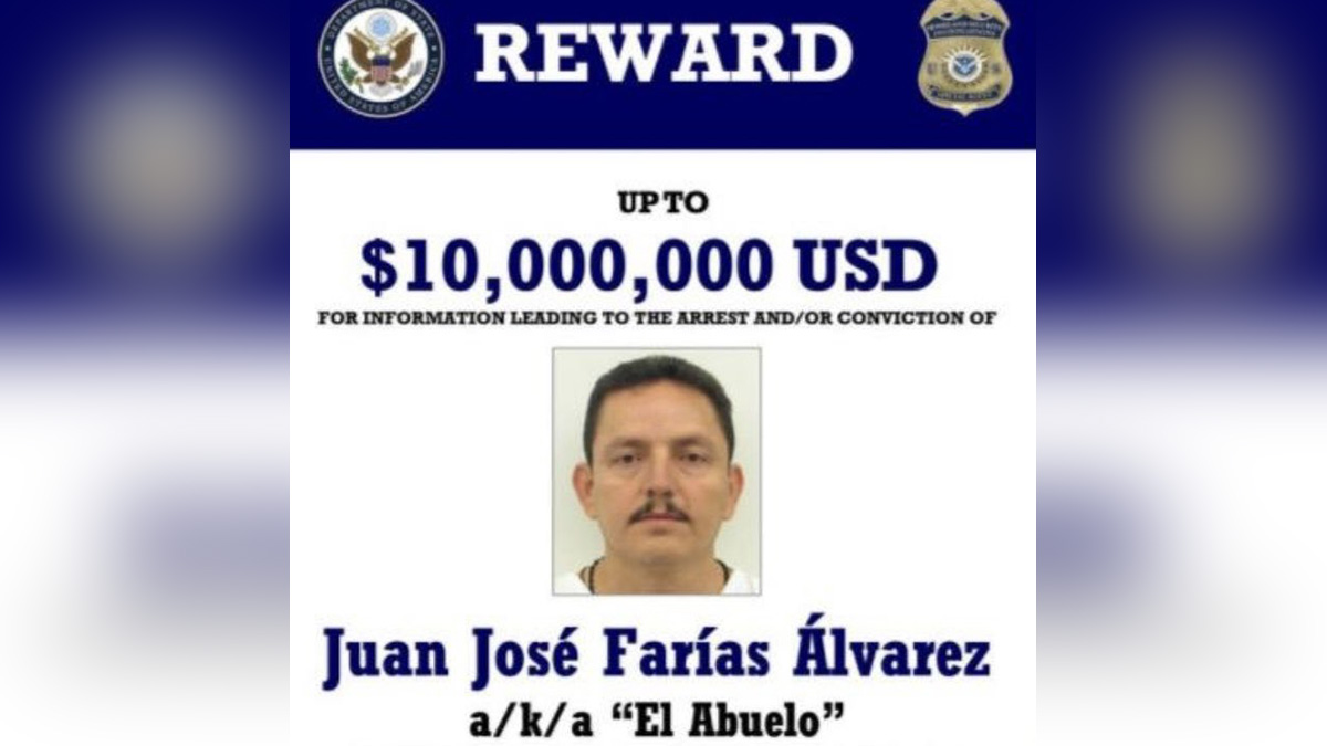 De acuerdo con la dependencia, Farías, por quien se anunció una recompensa de 10 millones de dólares, se encuentra vinculado con asesinatos y el tráfico de drogas a Estados Unidos.