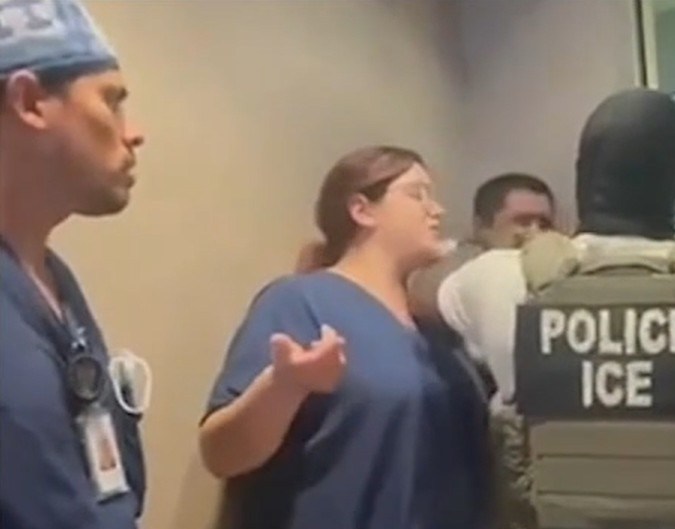 “Ortega y Dávila, ambos con uniformes médicos, obstaculizaron e interfirieron en el arresto: Dávila se interpuso entre el agente y el inmigrante, lo empujó y gritó “¡Suéltalo!” y “¡Fuera!”; Ortega lo agarró del brazo y luego del chaleco”, afirma la queja.