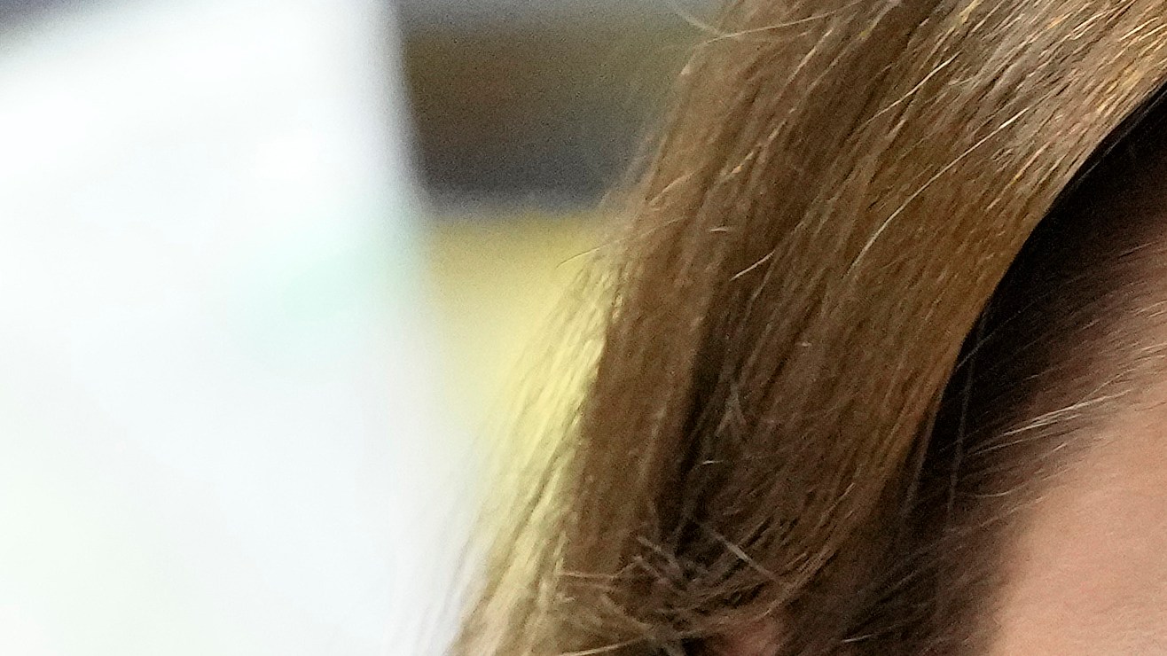 Para la ocasión, lució un elegante peinado recogido en una media cola, que lucía notablemente más oscuro, aunque con sutiles matices dorados que le aportaban luminosidad. Su atuendo, compuesto por un blazer oscuro, una blusa con volantes y discretos pendientes de aro, completaba un look sofisticado y clásico.