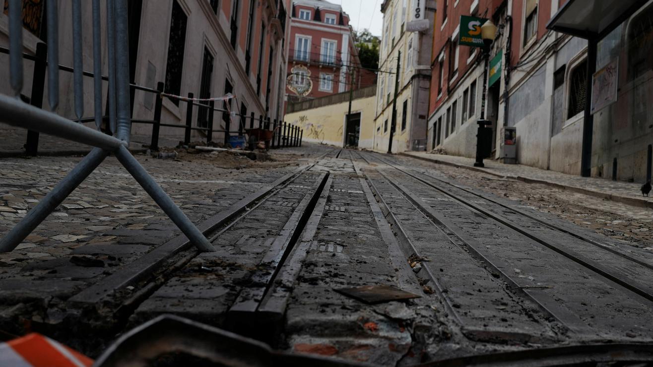 Una vista de Calcada da Gloria tras el descarrilamiento y accidente del vagón del funicular Gloria, una popular atracción turística, que provocó múltiples víctimas, en Lisboa. Crédito: Deutsche Welle
