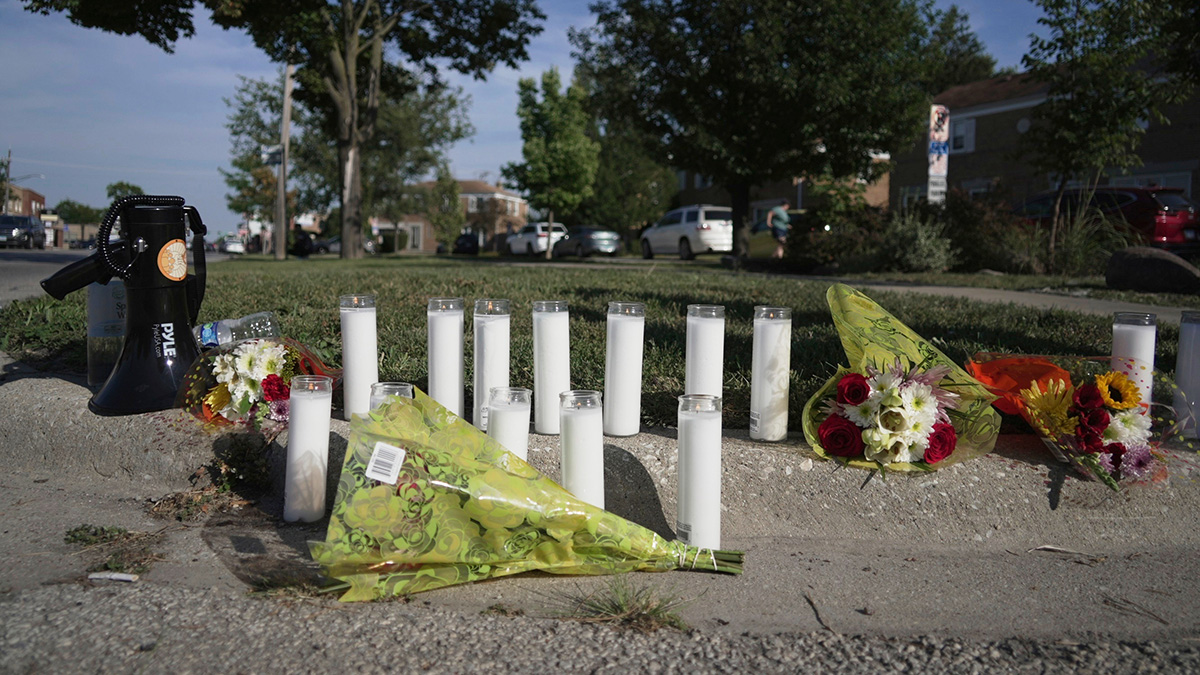 Velas y flores colocadas cerca de la calle donde un oficial de Inmigración disparó fatalmente a un sospechoso que intentaba evadir el arresto. Crédito: Laura Bargfeld | AP