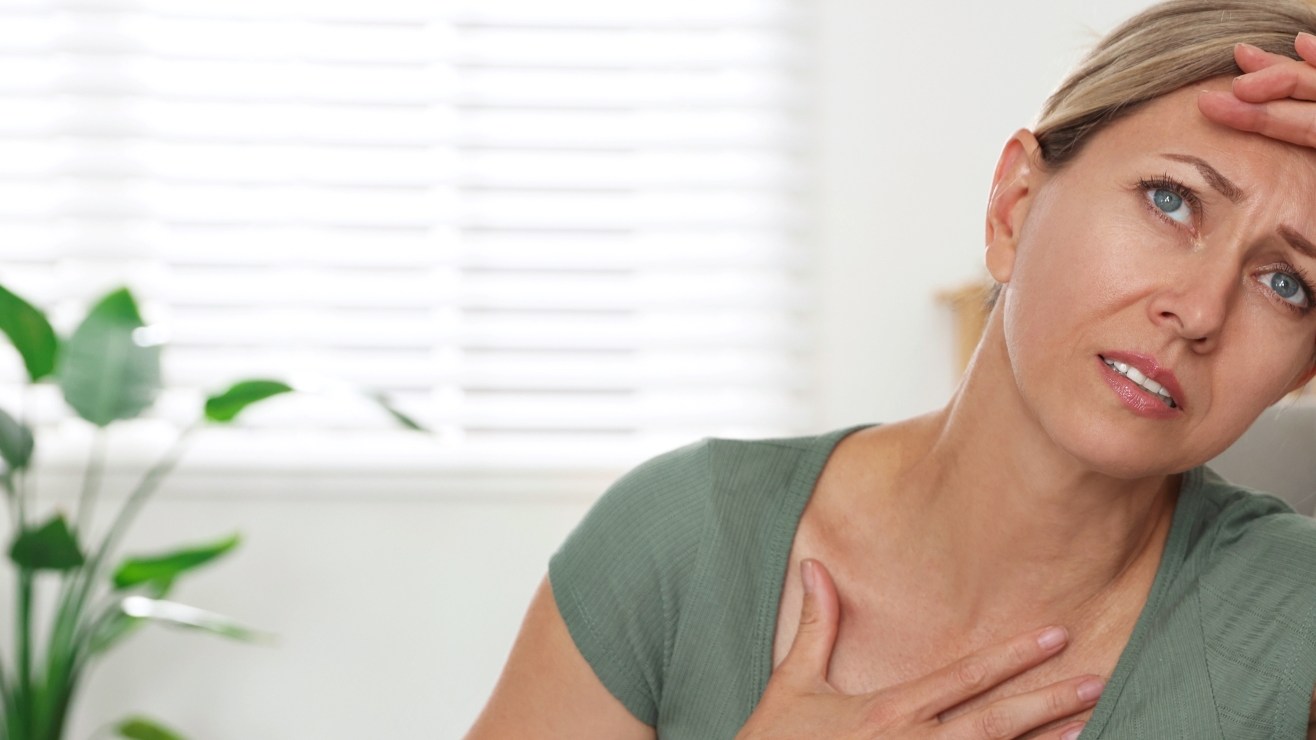 Mujer sufre de sofocos y otros síntomas característicos de la menopausia. Crédito: New Africa | Shutterstock