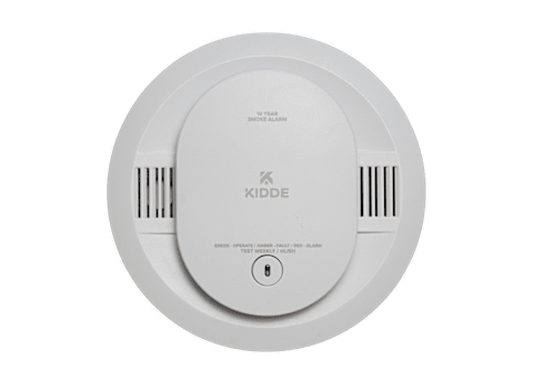 The Kidde 20SA10 responds quickly to both flaming and smoldering fires in our tests. It’s hardwired, but also comes with a 10-year lithium battery backup in case of outages. This detector has a hush button, which is useful in the event of nuisance alarms from cooking, and is interconnectable with other compatible detectors throughout your home, so that when one alarm goes off, they all do.