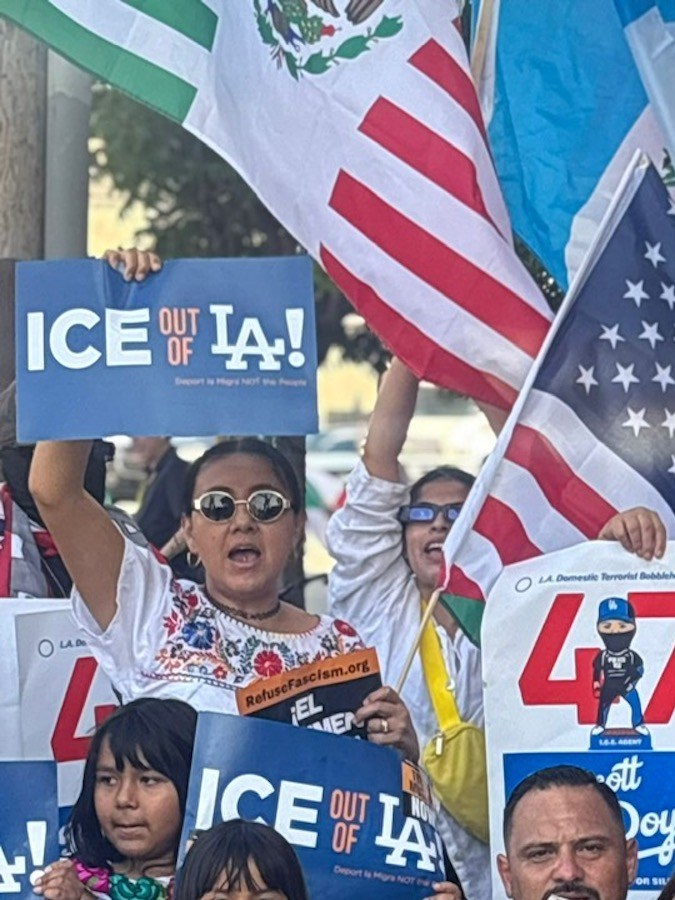 “Me salí porque Los Dodgers no están ayudando a la comunidad latina y necesitan hacer un mejor papel”, dijo Valentina quien junto con su padre el activista Raúl Claros han participado en varias protestas para pedir al Servicio de Inmigración y Aduanas (ICE) que se vaya de Los Ángeles, y a su equipo favorito de béisbol Los Dodgers que fije una postura frente a los militarizadas redadas de migración.