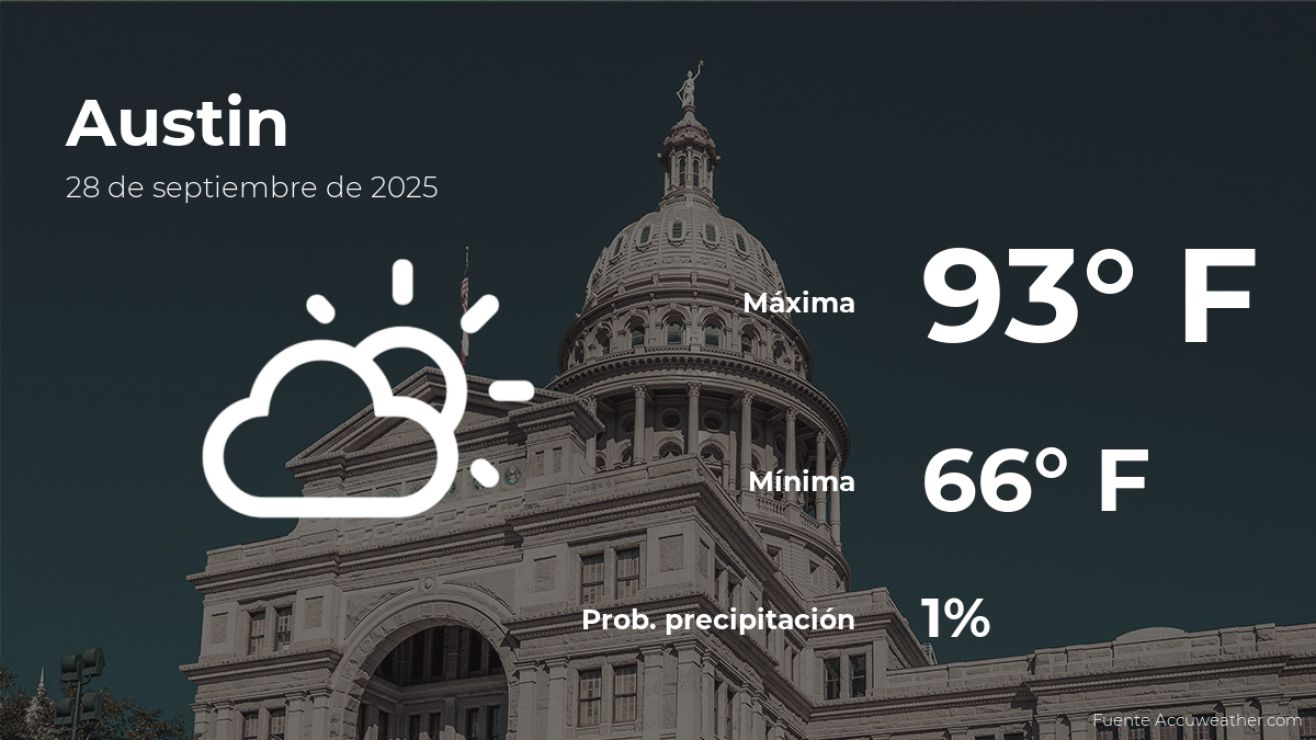 Pronóstico del tiempo en Austin, Texas para este domingo 28 de septiembre