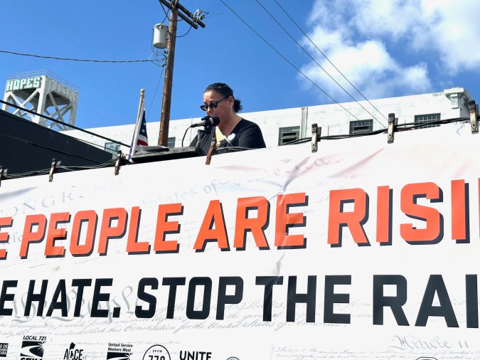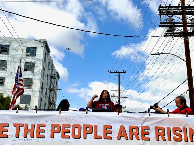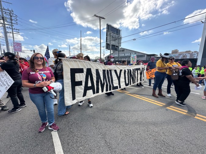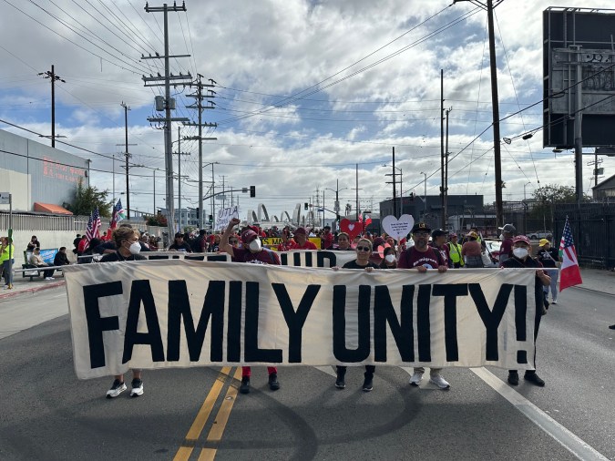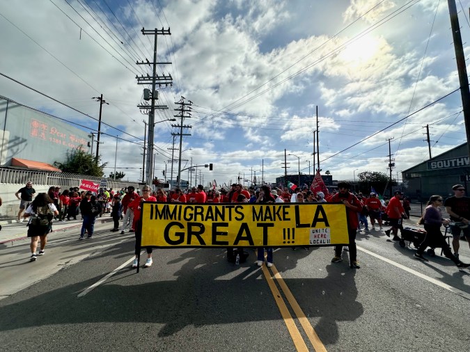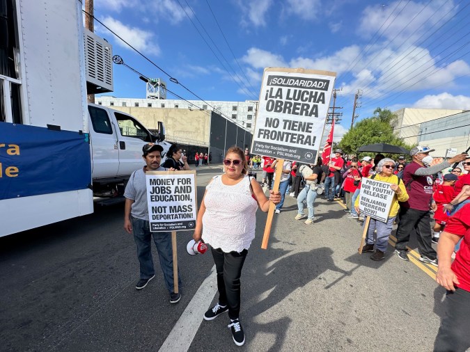 “Queremos decirle a este presidente corrupto, a este presidente cruel, a este presidente caótico, que somos muy poderosos. Somos el pueblo de los Estados Unidos y vamos a proteger a nuestras comunidades y a mantener unidas a nuestras familias”, clamó Angélica Salas, líder de la Coalición por los Derechos Humanos de los Inmigrantes (CHIRLA).