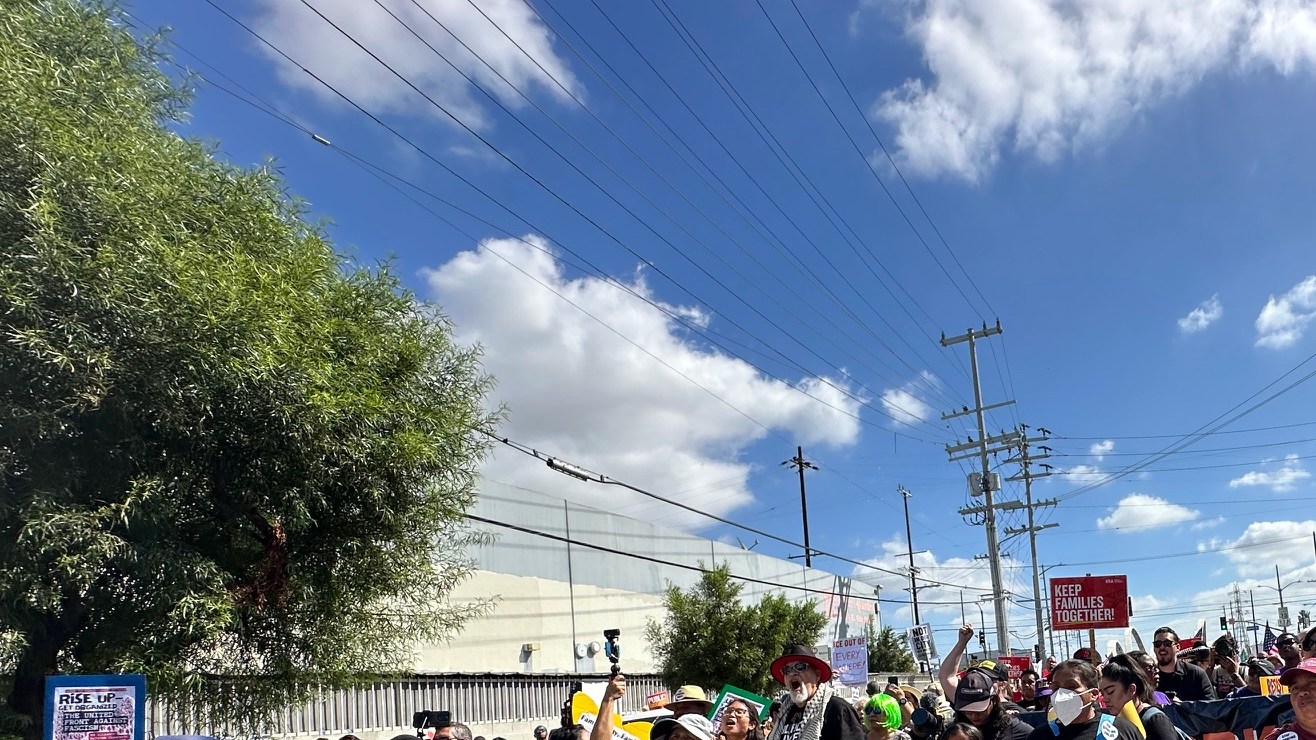 Los manifestantes, mayormente trabajadores sindicalizados del SEIU-USWW que son conserjes, oficiales de seguridad, empleados de estadios y de aeropuertos en Los Ángeles marcharon una milla y media portando pancartas y mantas con la exigencia de ciudadanía y de repudio a las acciones de la Administración Trump contra los inmigrantes.