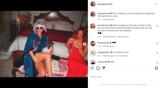 De inmediato, la publicación de Selena se llenó de comentarios de sus seguidores. “Eres feliz para siempre, lo mereces”, “¡Este es el final de cuento de hadas que te mereces!”, “Pareces una princesa de la vida real”, son algunos de los comentarios.