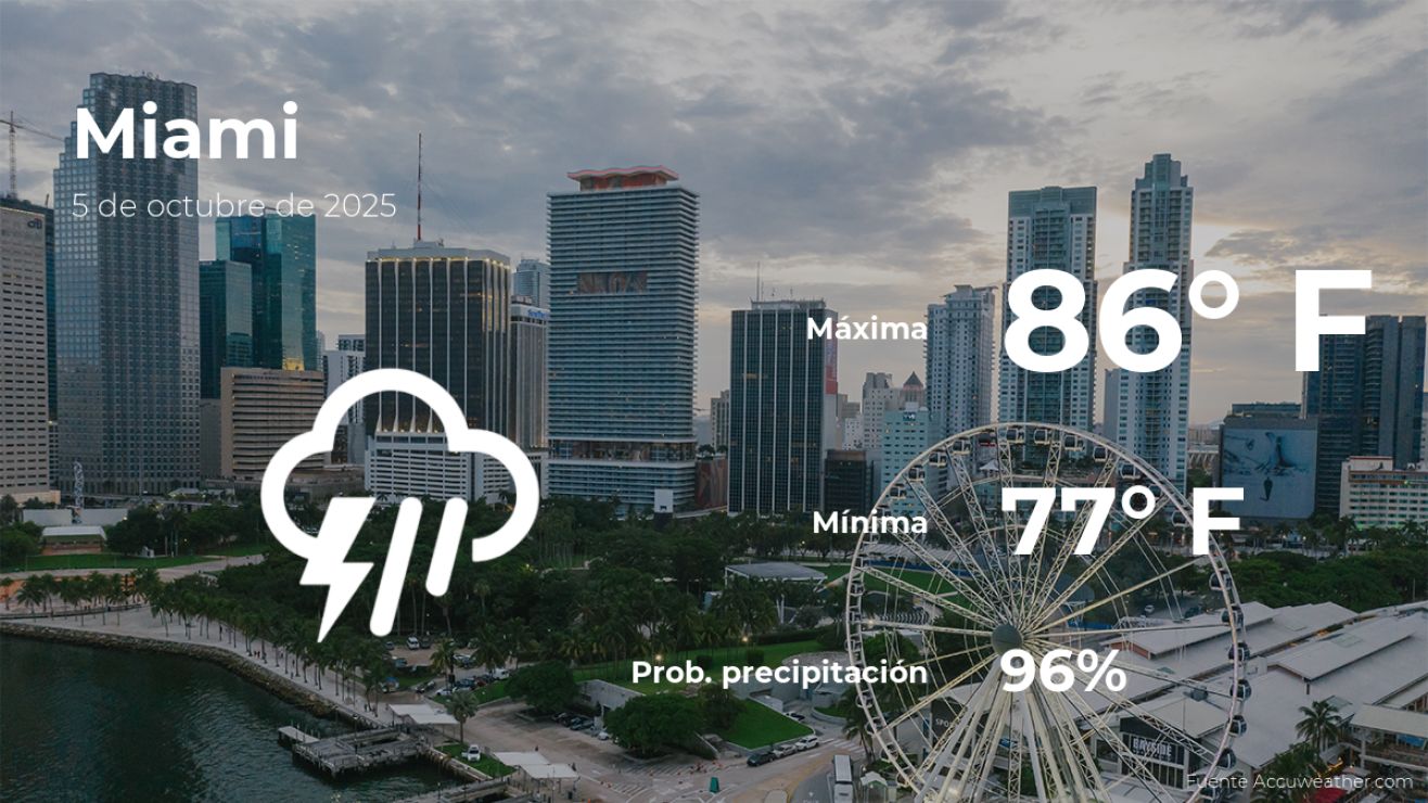 Encuentra el pronóstico meteorológico de hoy para Miami, Florida, cómo estará el tiempo y las condiciones climáticas este domingo 5 de octubre.