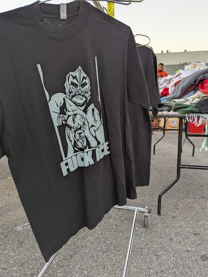 Sin embargo, sí una caminata política, porque el único lema, o idea, o grito que se ve por todas partes es un insulto: Fuck ICE. Una playera (un t-shirt) negra tiene esas dos palabras expresadas en el pecho, y una señora alegremente me anima a llevarme una: “It’s free!”, me dice. Le contesto en español: ¿está segura, señora? Y, ella insiste en inglés, yes, aunque es hispanoparlante. Quizás piense que yo, con mi tez blanca, no lo soy.