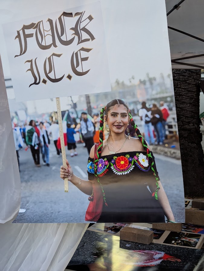 Y el “fuck ICE” se repite en los lienzos pintados por la gente, y en creaciones que reproduzco aquí.