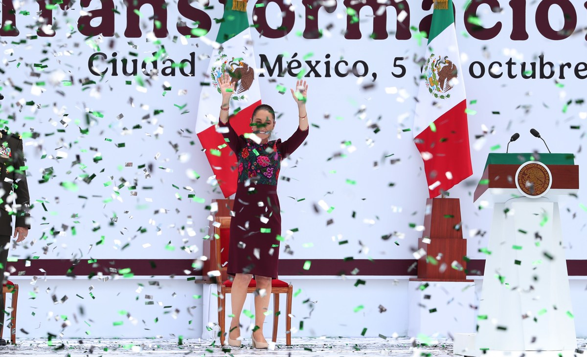 En el acto, la mandataria se dio un baño de masas en la plaza política y social más importante del país, reivindicó los logros del expresidente Andrés Manuel López Obrador (2012-2018), fundador del oficialista Movimiento de Regeneración Nacional (Morena) al decir que los avances en el país son su herencia.