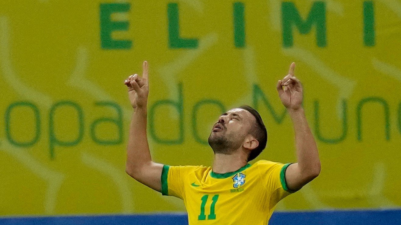 Everton Ribeiro festeja un gol para Brasil en 2021. Crédito: Andre Penner | AP