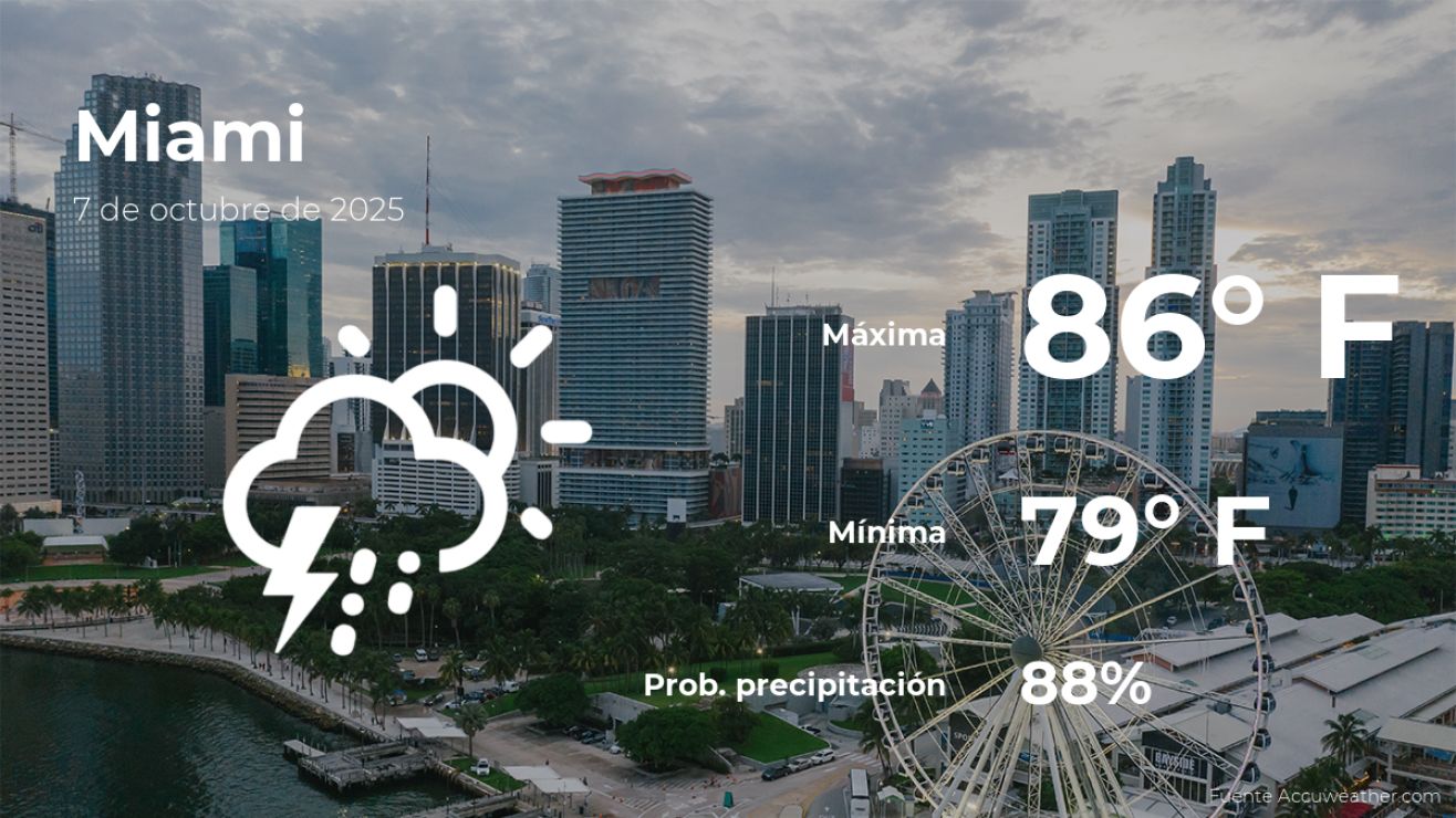Encuentra el pronóstico meteorológico de hoy para Miami, Florida, cómo estará el tiempo y las condiciones climáticas este martes 7 de octubre.