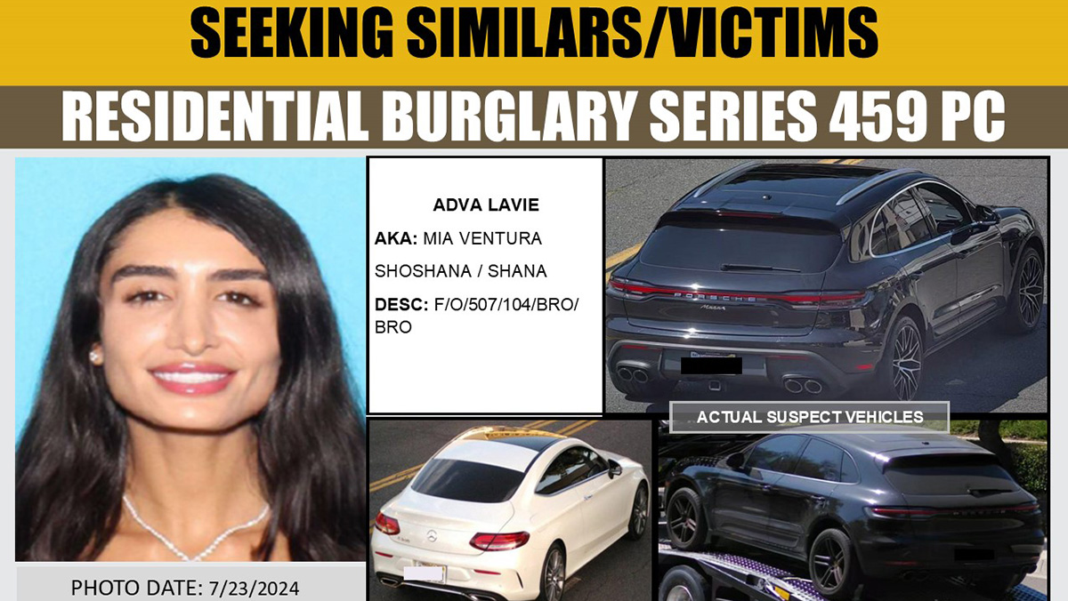 En un comunicado en el que se solicitaba la comparecencia de más víctimas potenciales, los agentes del condado de Los Ángeles identificaron a la sospechosa como Adva Lavie, también conocida como Mia Ventura Shoshana/Shana.