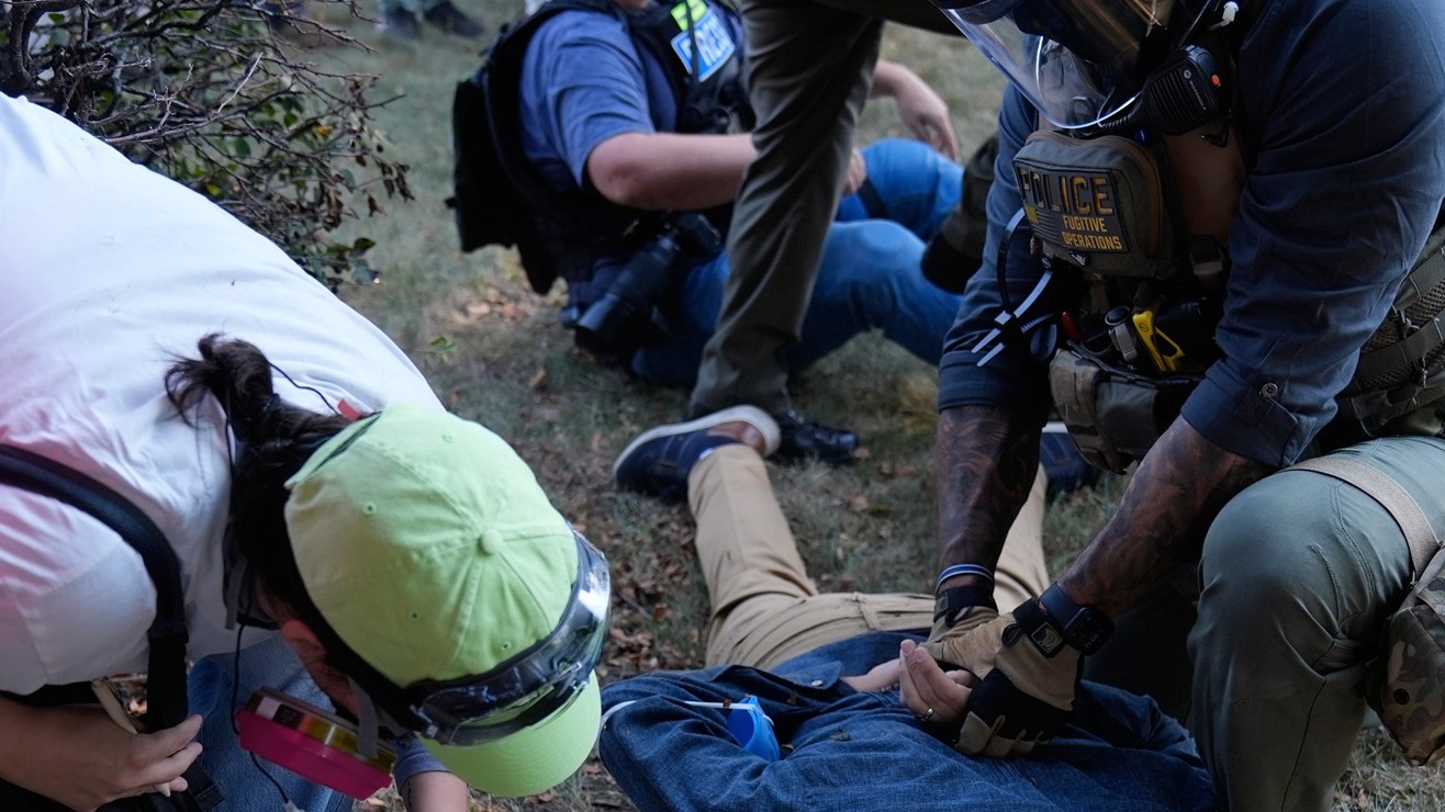 En otro caso, la agencia Associated Press captó el momento en que un agente federal apuntó con un arma antidisturbios a un manifestante en Chicago el martes pasado.