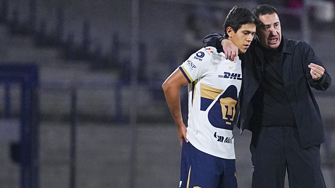Efraín Juárez, que aquí da indicaciones a José Juan Macías, está consciente del descontento de la afición de Pumas. Crédito: Manlio Contreras | Imago7