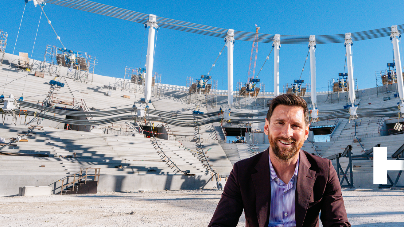 Lionel Messi renovó contrato con la postal de cómo va el estadio del Miami Freedom Park de fondo. Crédito: Inter Miami | Cortesía