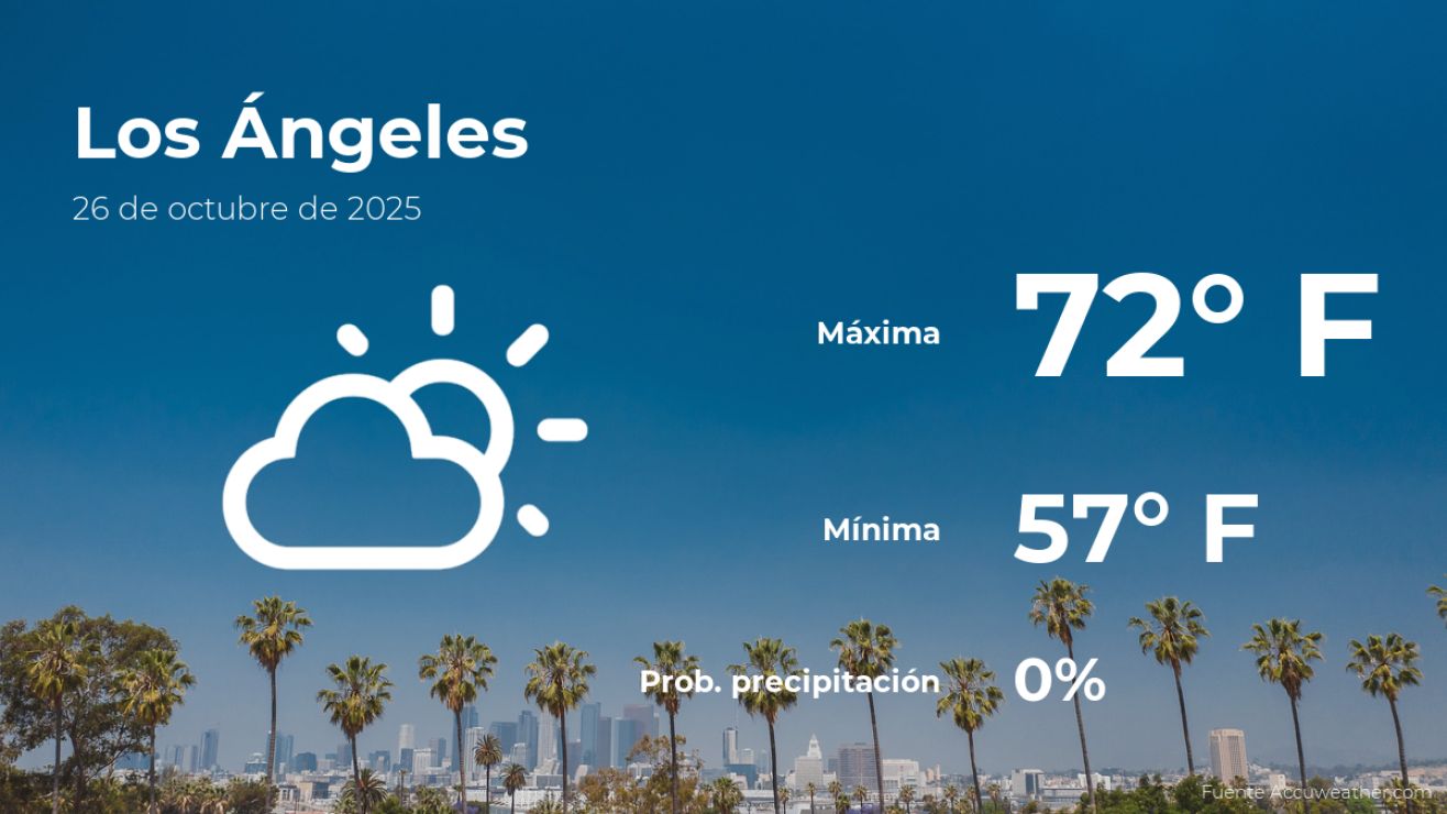 Encuentra el pronóstico meteorológico de hoy para Los Ángeles, cómo estará el tiempo y las condiciones climáticas este domingo 26 de octubre.