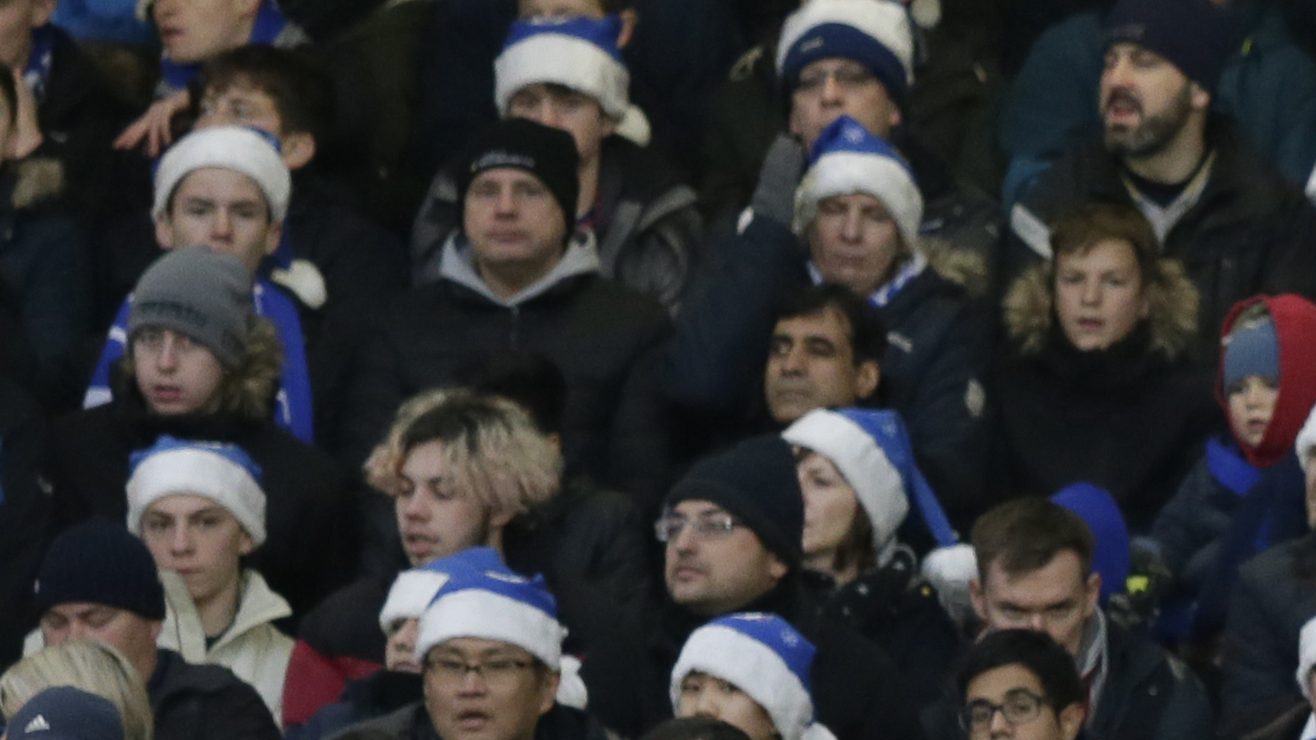 Fanáticos del Chelsea con gorros de Navidad durante partido de la Premier League. Crédito: Tim Ireland | AP