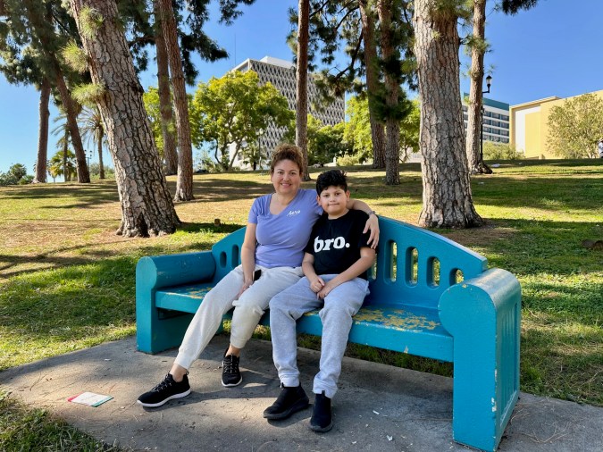 Cindy Bernal y su hijo Isaias de diez años vinieron desde Bakersfield a arreglar unos asuntos al Consulado General de México en Los Ángeles, y decidieron sentarse en el Parque MacArthur a esperar por un par de horas que el esposo y padre terminara sus diligencias.
