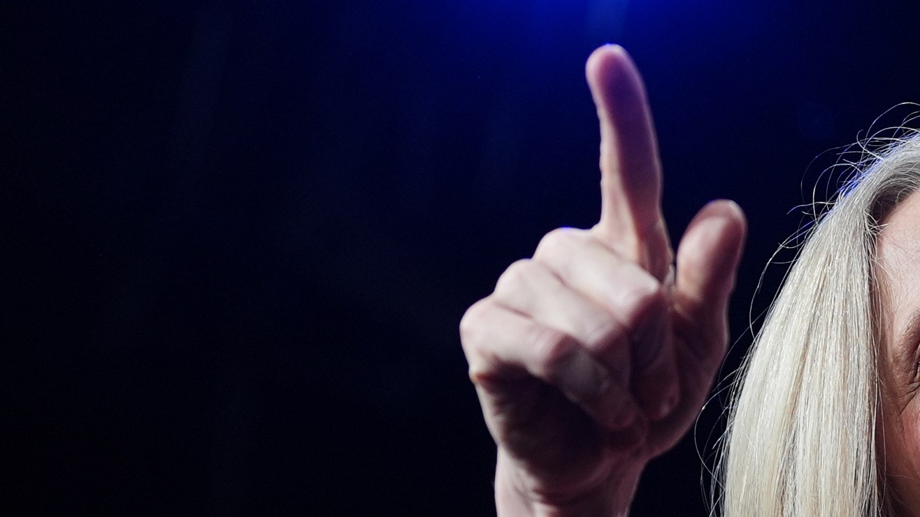 La demócrata Abigail Spanberger señala a la multitud después de ser declarada ganadora de la contienda por la gobernación de Virginia durante una fiesta de seguimiento de resultados la noche de las elecciones el martes 4 de noviembre de 2025 en Richmond, Virginia. Crédito: Stephanie Scarbrough | AP