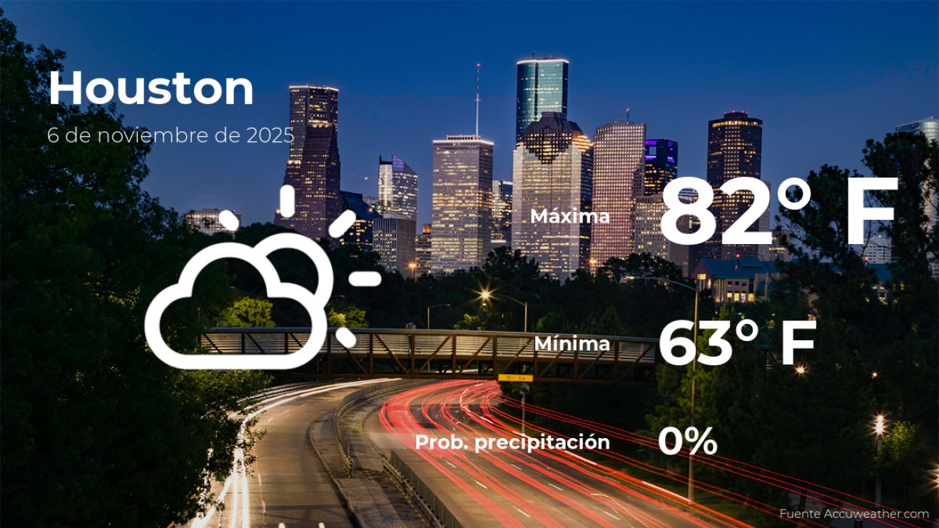Encuentra el pronóstico meteorológico de hoy para Houston, Texas, cómo estará el tiempo y las condiciones climáticas este jueves 6 de noviembre.