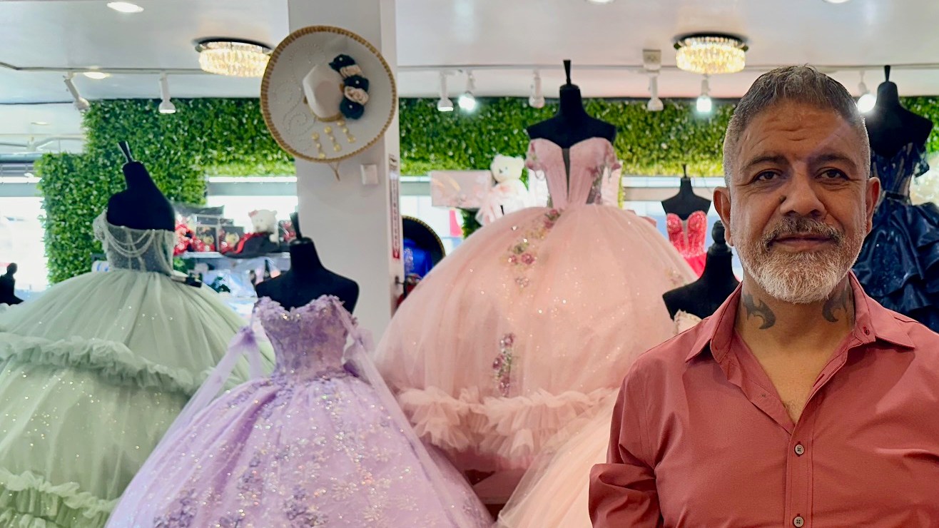 Sebastián de la tienda Diamond Dress, especializada en vestidos de novia y quinceañeras días dice que las ventas cayeron a partir de la llegada de Trump y las redadas.