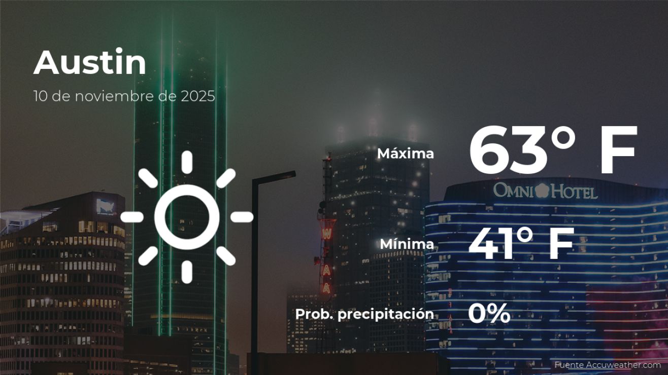 Pronóstico del clima en Austin para este lunes 10 de noviembre