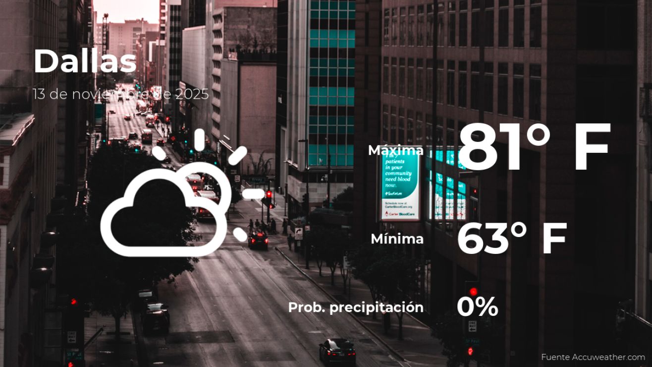 Pronóstico del tiempo en Dallas para este jueves 13 de noviembre