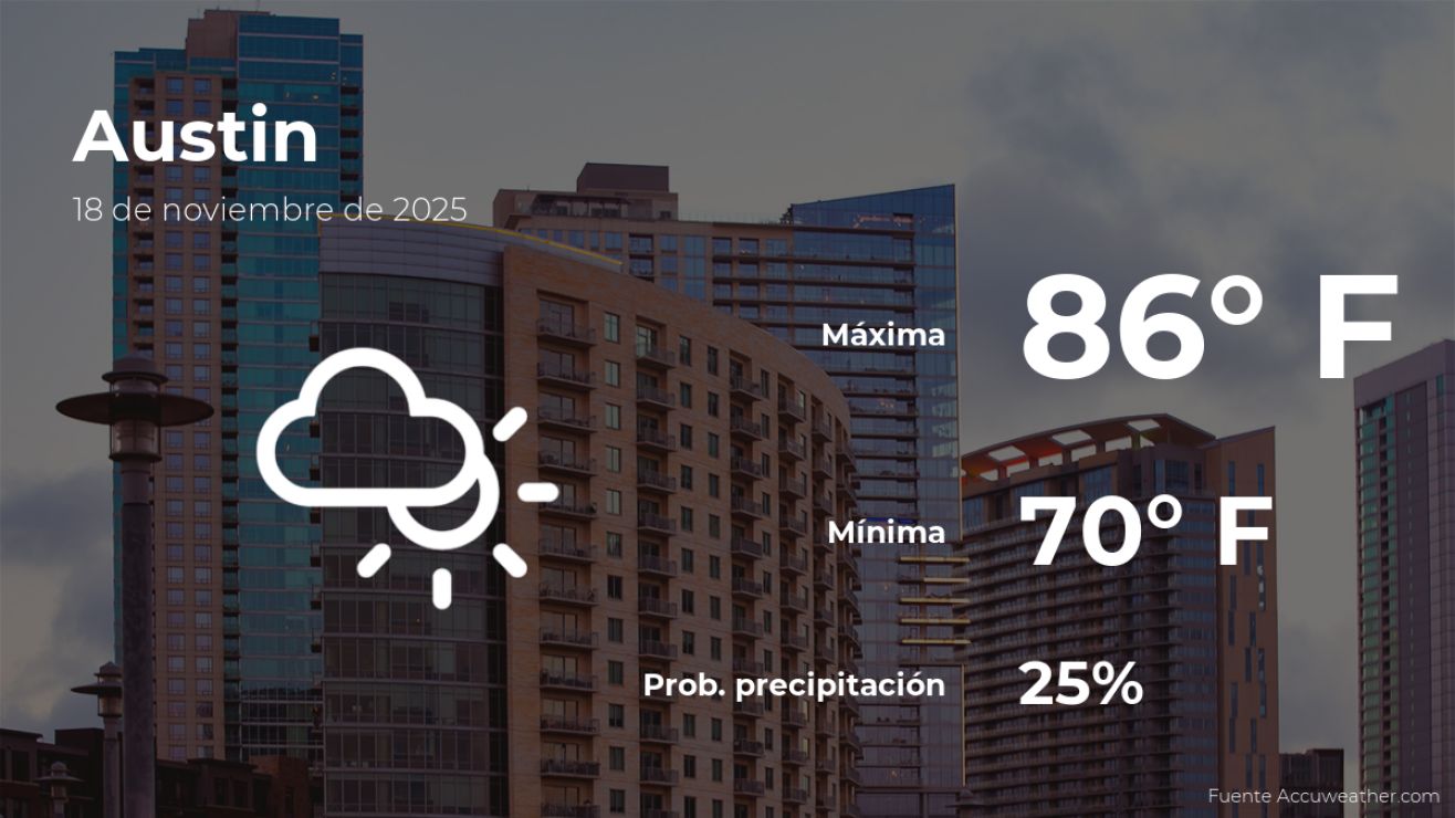 Encuentra el pronóstico meteorológico de hoy para Austin, Texas, cómo estará el tiempo y las condiciones climáticas este martes 18 de noviembre.